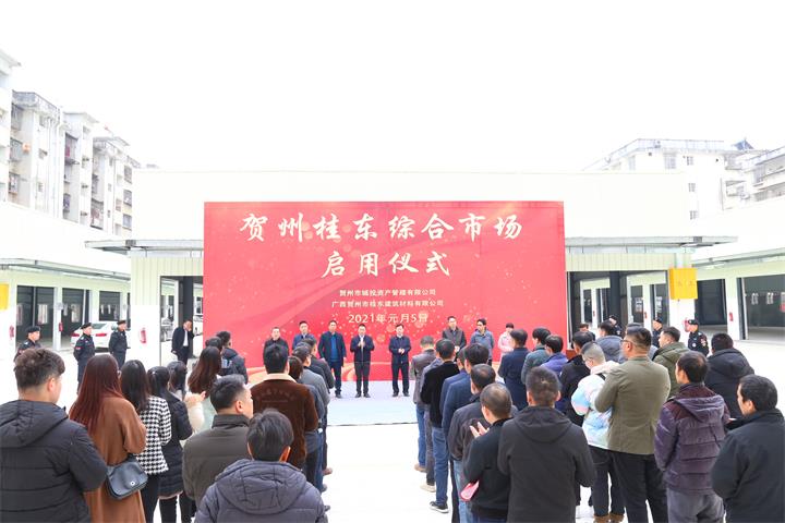 2021年1月5日,賀州桂東綜合市場(chǎng)舉行啟用儀式,標志著(zhù)該市場(chǎng)正式開(kāi)業(yè),集團副總經(jīng)理、資產(chǎn)公司執行董事常瑜出席儀式并宣布市場(chǎng)正式啟用,資產(chǎn)公司副總經(jīng)理、建材公司執行董事謝慈政代表業(yè)主介紹市場(chǎng)基本情況,資產(chǎn)公司總經(jīng)理石遠征主持儀式。