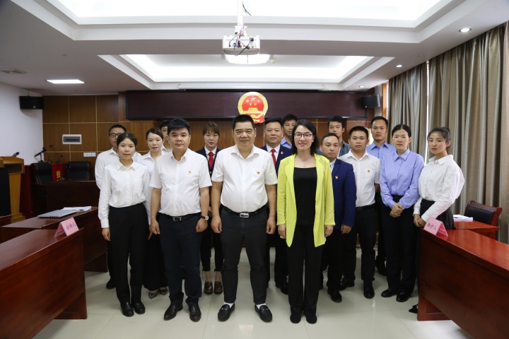 發(fā)布時(shí)間:2021-06-02 作者:圖/劉振善 文/何莎莎 來(lái)源:本站原創(chuàng ) 審核:鄧永劍6月2日,賀州城投集團紀委牽頭組織,集團機關(guān)黨支部、正贏(yíng)實(shí)業(yè)公司黨支部、富泉公司黨支部聯(lián)合開(kāi)展“模擬法庭進(jìn)企業(yè)、職工學(xué)紀零距離”廉政警示教育活動(dòng),以直觀(guān)、形象、生動(dòng)的黨規黨紀、法律法規和理想信念教育,再敲思想警鐘。集團黨委書(shū)記、董事長(cháng)、總經(jīng)理蒙金昌出席并上微黨課,集團黨委委員、紀委書(shū)記吳澤蓮,集團黨委委員、副總經(jīng)理柳國忠參加活動(dòng),集團黨委副書(shū)記、工會(huì )主席梁輝露主持活動(dòng)。