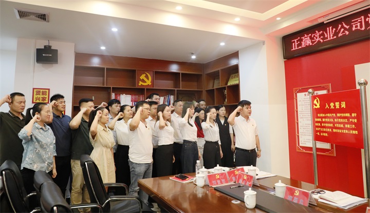 發(fā)布時(shí)間:2021-07-02 作者:圖/何志華 文/何莎莎 來(lái)源:本站原創(chuàng ) 審核:鄧永劍為加強組織建設,深入開(kāi)展黨史學(xué)習教育,7月1日,正贏(yíng)實(shí)業(yè)公司黨支部開(kāi)展“百年風(fēng)華譜新篇,紅色精神永傳承”主題黨日活動(dòng),舉行新發(fā)展黨員入黨宣誓儀式,教育引導黨員干部堅定理想信念、奮力爭先創(chuàng )優(yōu)。黨支部副書(shū)記、總經(jīng)理聶茂良主持會(huì )議。公司黨員、職工共三十多人參加會(huì )議。